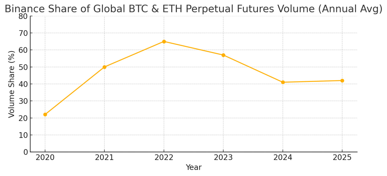 The exchange’s slice of that pie has shrunk from 65% in 2022 to 41% in 2024, a shift that aligns with what we see in live trading accounts:
