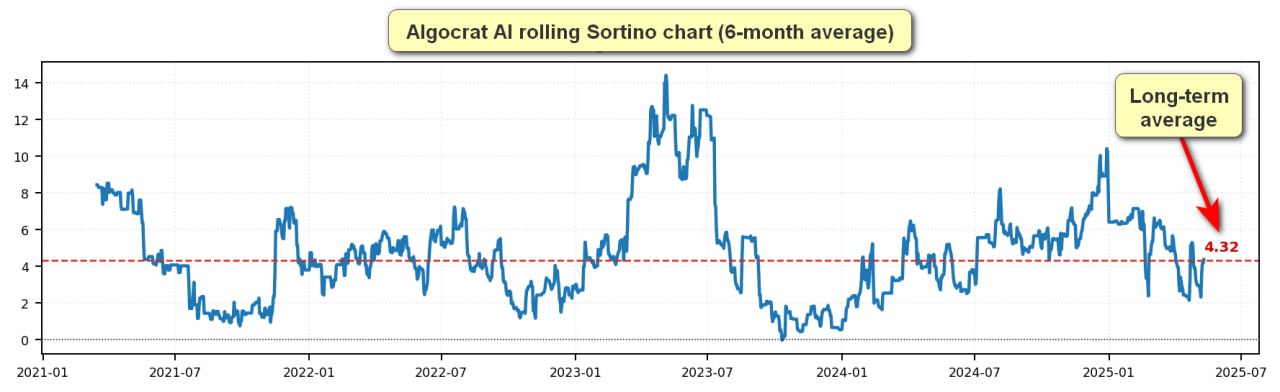 What we see is that the 2024 performance was well above average (at some point, Sortino reached an unrealistic 10.0), while the last 6 months are closer to average.
